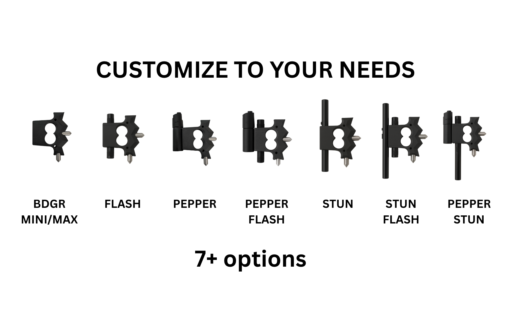 The Family BADGER 3-Pack makes it easy to keep your family prepared.Mix and match MAX / MINI / MICRO to make a 3 pack. No restrictions. Lightweight, compact, and built from carbon-fiber reinforced nylon. Protect the whole family with BADGER. — because peace of mind is better than regret. Customize for your families needs. Deterrent not included.